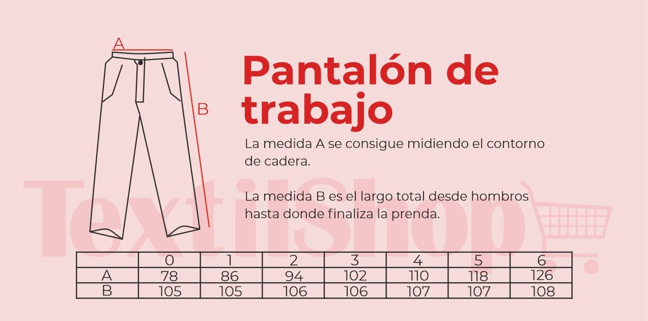 Pantalón básico de trabajo, 35% algodón y 65% poliéster, gramaje 190 g. Resistente, fácil de cuidar, con costuras reforzadas, bolsillos funcionales y medio elástico trasero. Disponible en blanco, gris, negro y azul marino, talles S al 3XL.